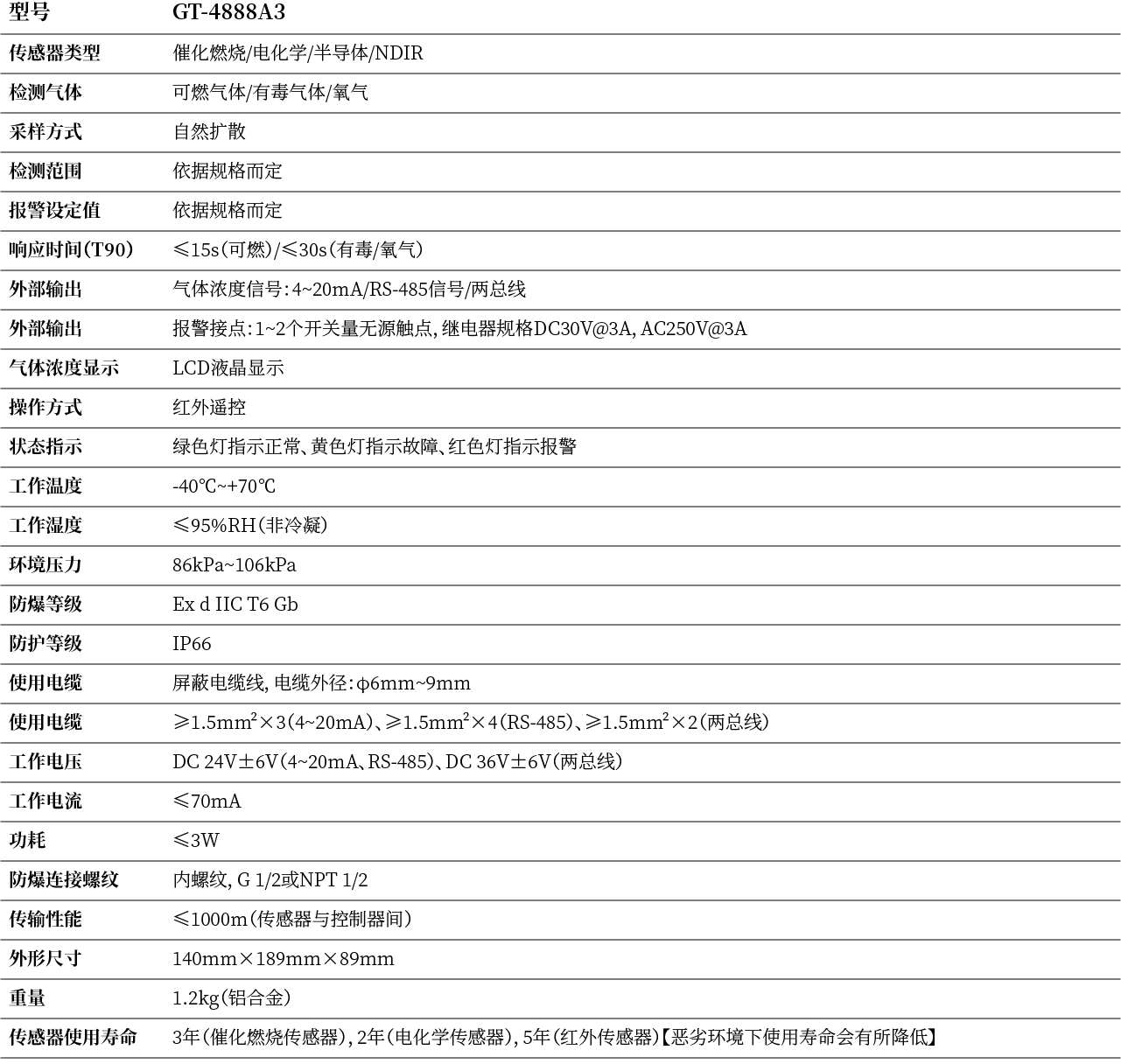 可燃气体(3~50)%LEL~(3~100)%LEL