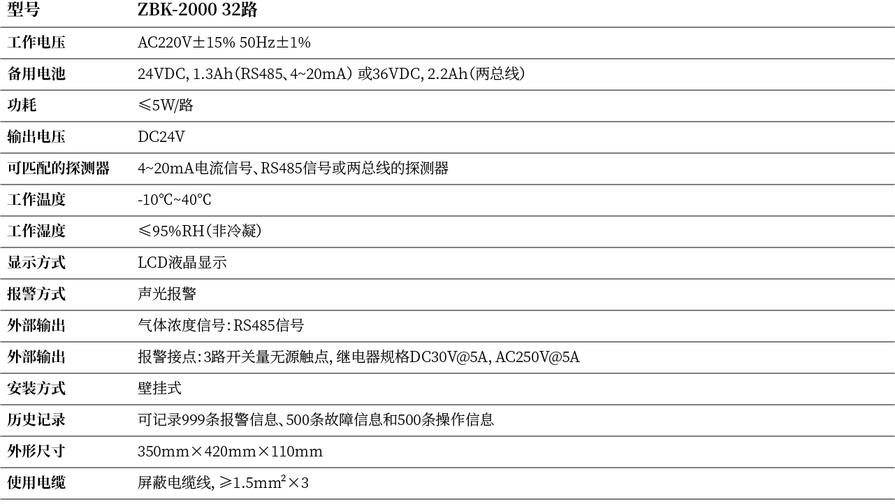 ·可与各种4~20mA信号输出、RS485信号或两总线的气体探测器配合